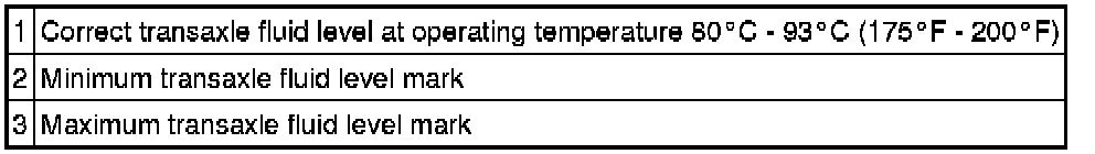 CAUTION:The vehicle should not be driven if the transaxle fluid level indicator shows the transaxle fluid below the minimum transaxle fluid level mark or internal failure could result.