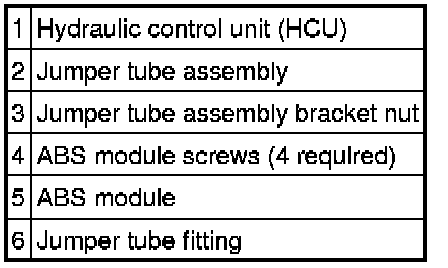 NOTE:Do not swap ABS modules between vehicles, the ABS module and the hydraulic control unit (HCU) are calibrated as an assembly.