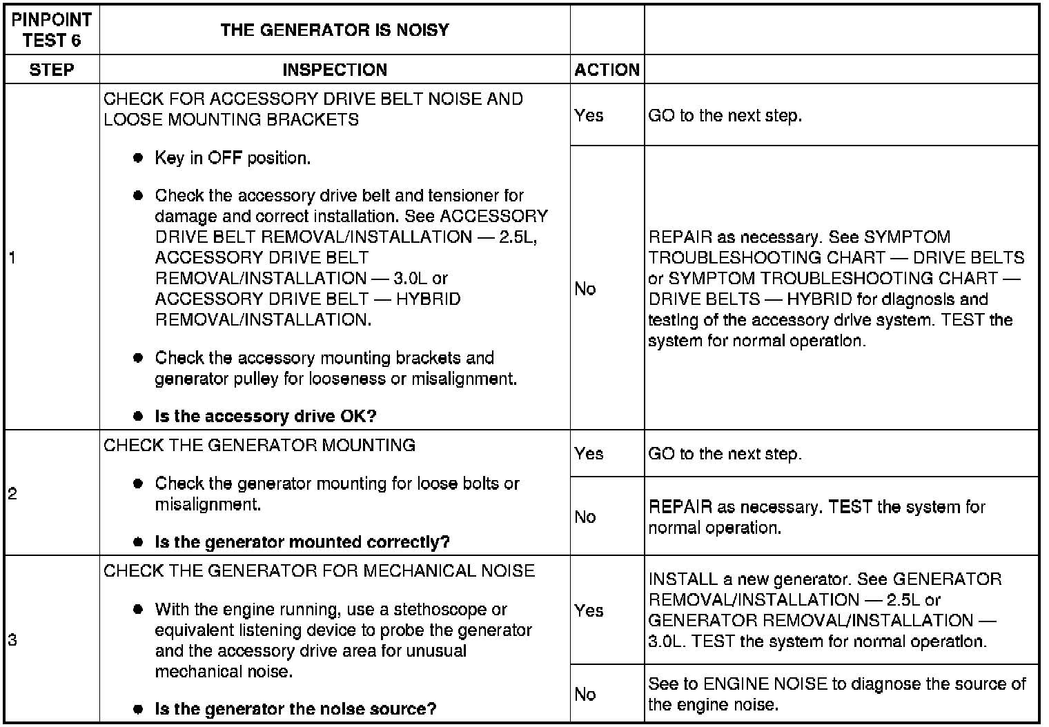 The generator is belt-driven by the engine accessory drive system. There are 2 sources of generator noise: bearing noise and electrical fault noise. A generator with certain types of diode or stator failures may also produce an audible noise.