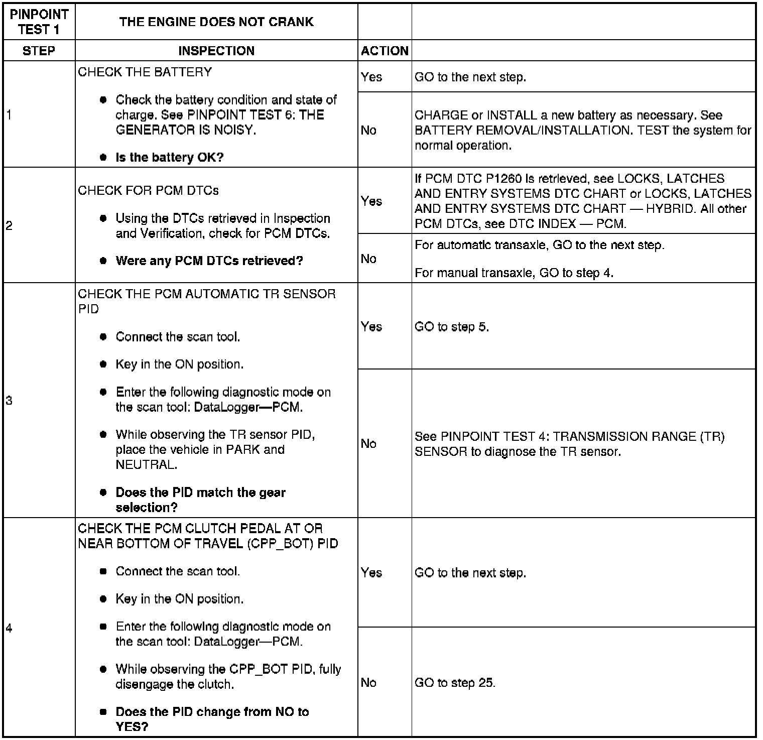PINPOINT TEST 1: THE ENGINE DOES NOT CRANK