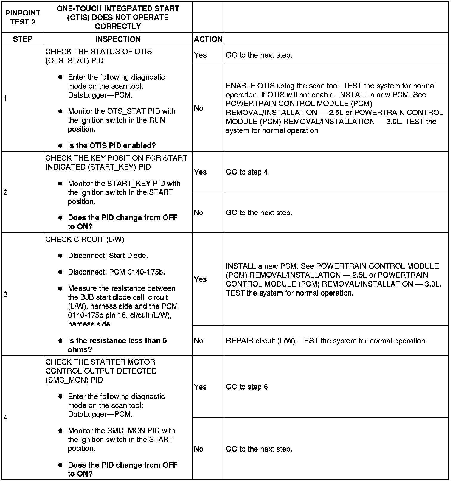 Pinpoint Test 2: One-Touch Integrated Start (OTIS) Does Not Operate Correctly