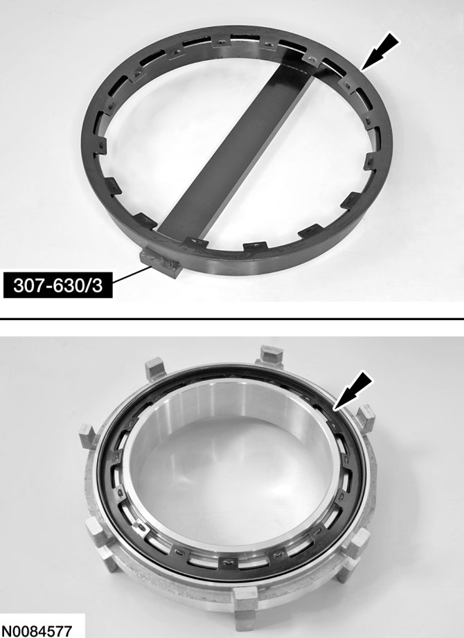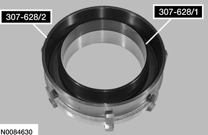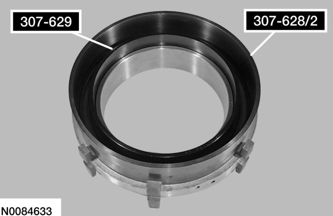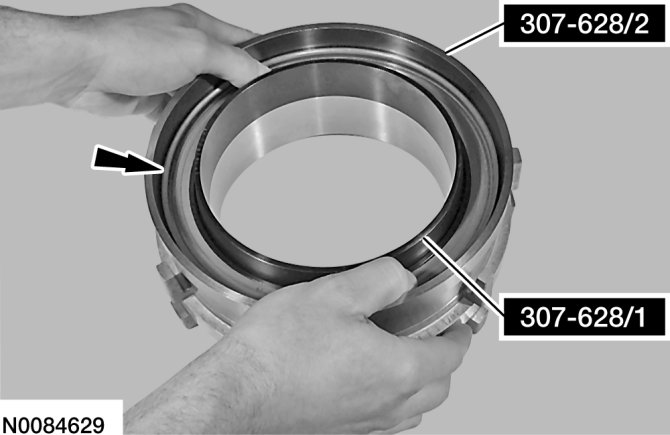 13. Position the forward (1, 2, 3, 4) clutch piston on Seal Protector 307-628/2 and Seal Protector 307-629 and push it down into the center support.