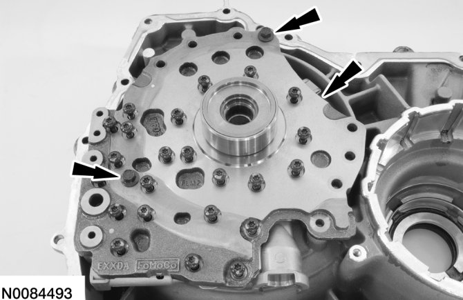 5. Install the pump assembly in the torque converter housing and install 2 bolts hand-tight.