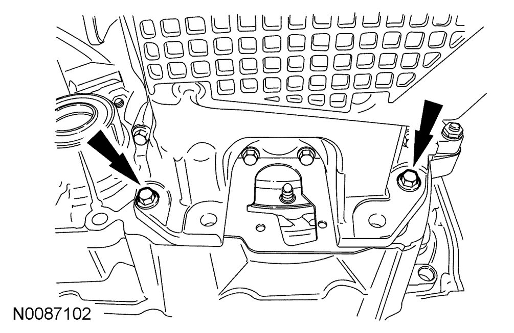7. Install the 2 oil pan-to-transaxle bolts.