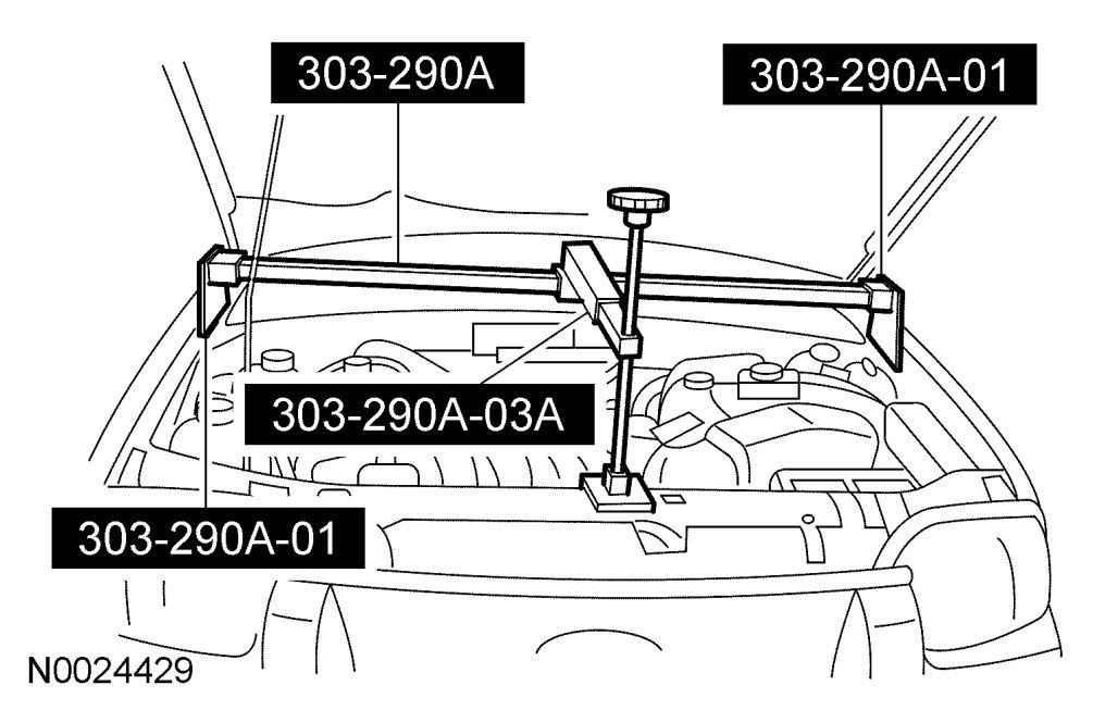15. Using the Engine Support Bar and Adapters, raise the transaxle until the transaxle support insulator bracket lines up with the transaxle support insulator and install the through bolt.