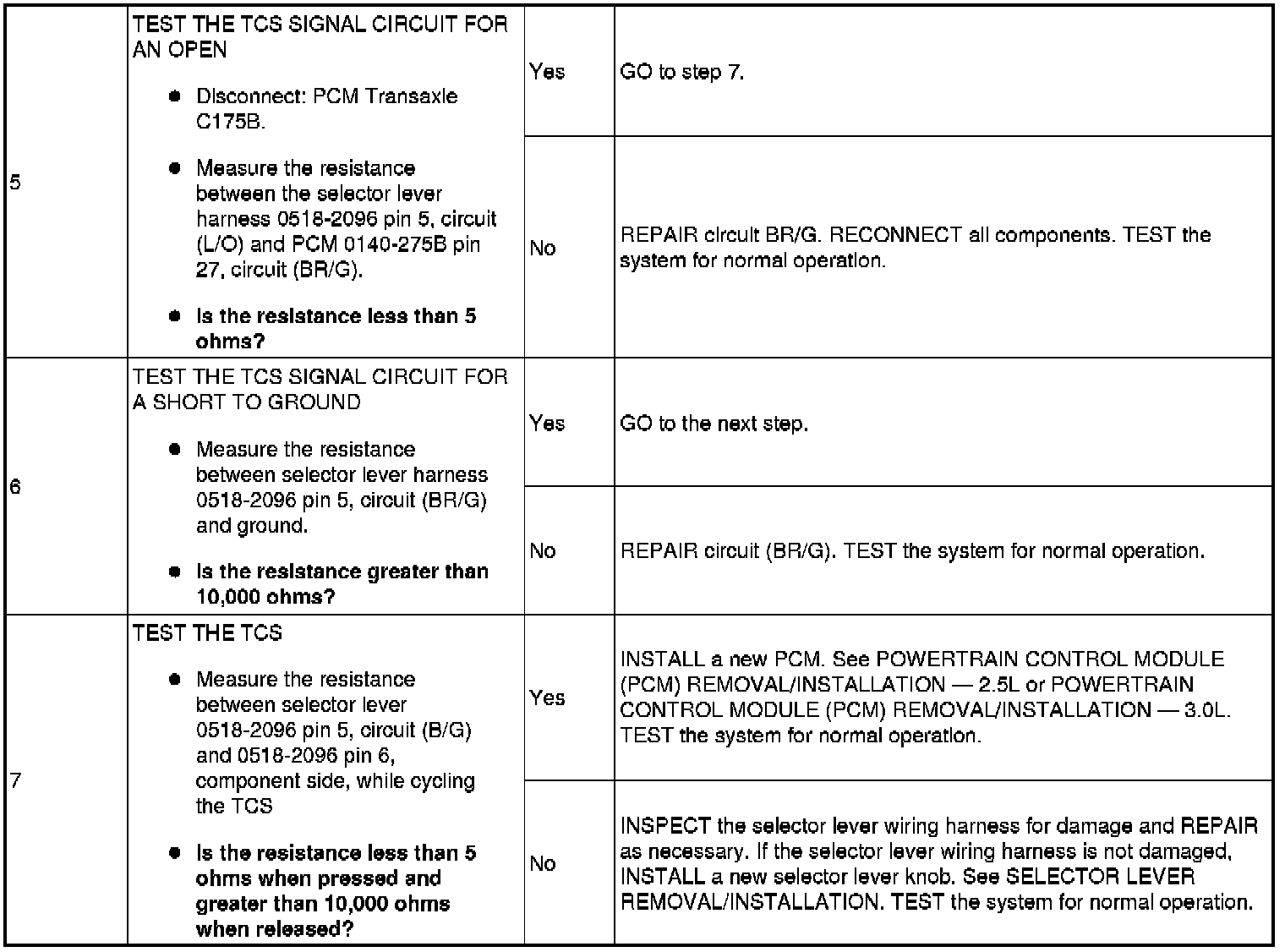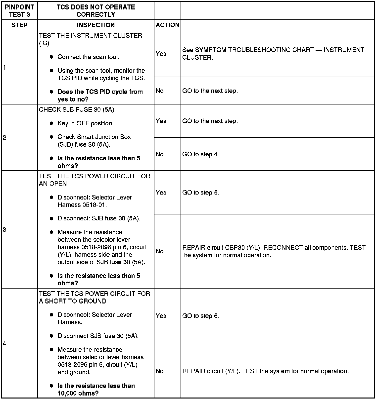 PINPOINT TEST 3: TRANSMISSION CONTROL SWITCH (TCS) DOES NOT OPERATE CORRECTLY