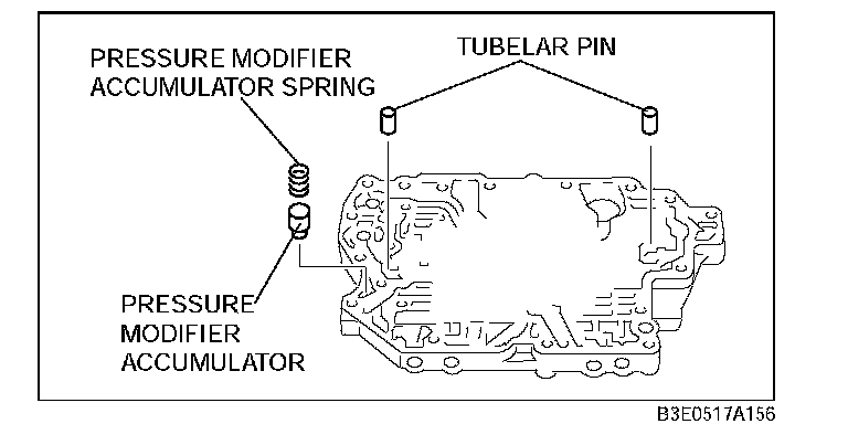 11. Remove the tubular pins, pressure modifier accumulator spring and pressure modifier accumulator from the main control valve body.