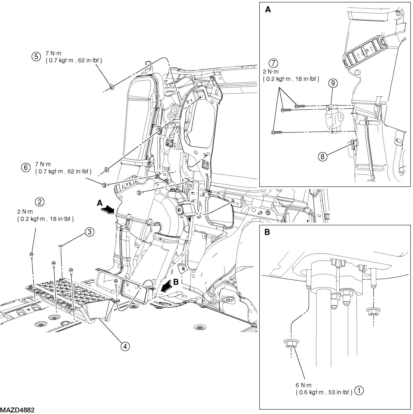 - To install, tighten to 7 Nm {0.7 kgf-m, 62 in-lbf}.