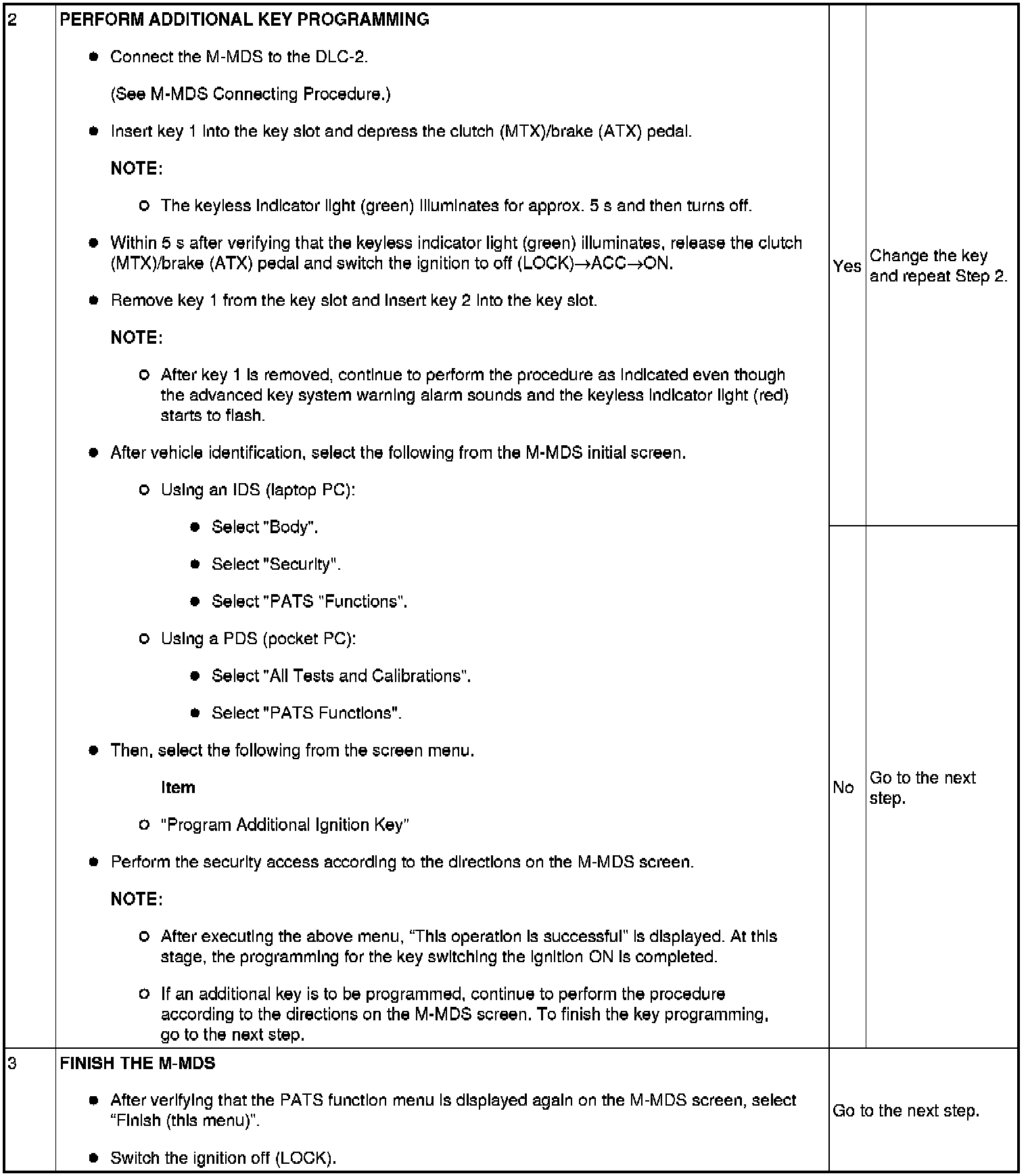 - If a key ID number cannot be programmed, verify the number of programmed keys using the M-MDS.