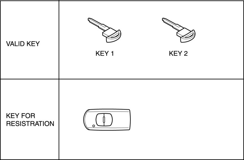 - The "Valid key" or "Valid advanced key" referred to in this information indicates the key that can start the engine.