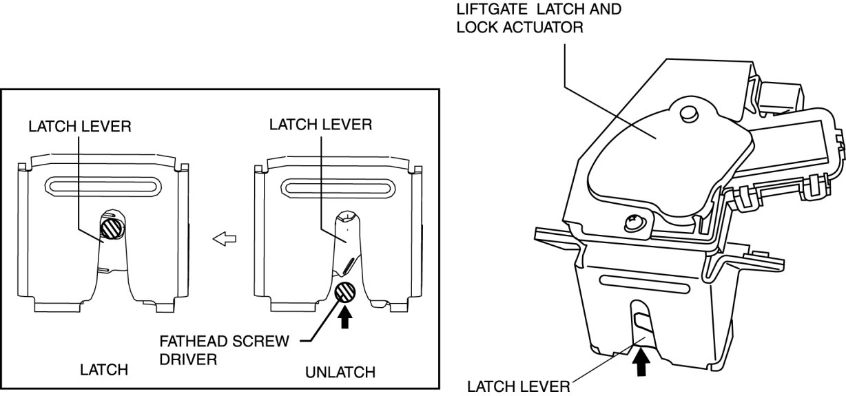 d. Liftgate latch and lock actuator Liftgate Latch And Lock Actuator Removal/Installation