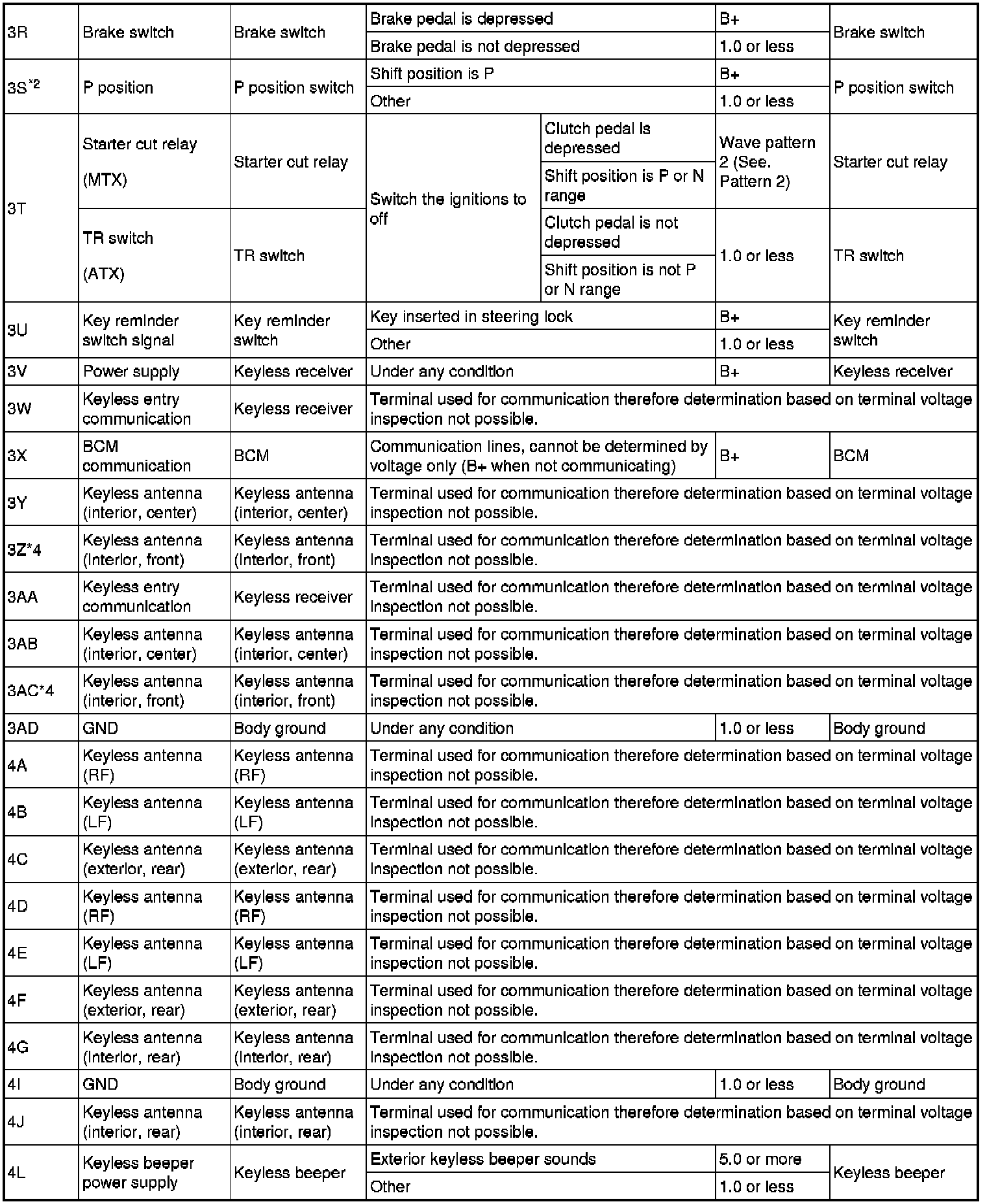 - Starter cut relay/TR switch: 3T (+) and body ground (-)