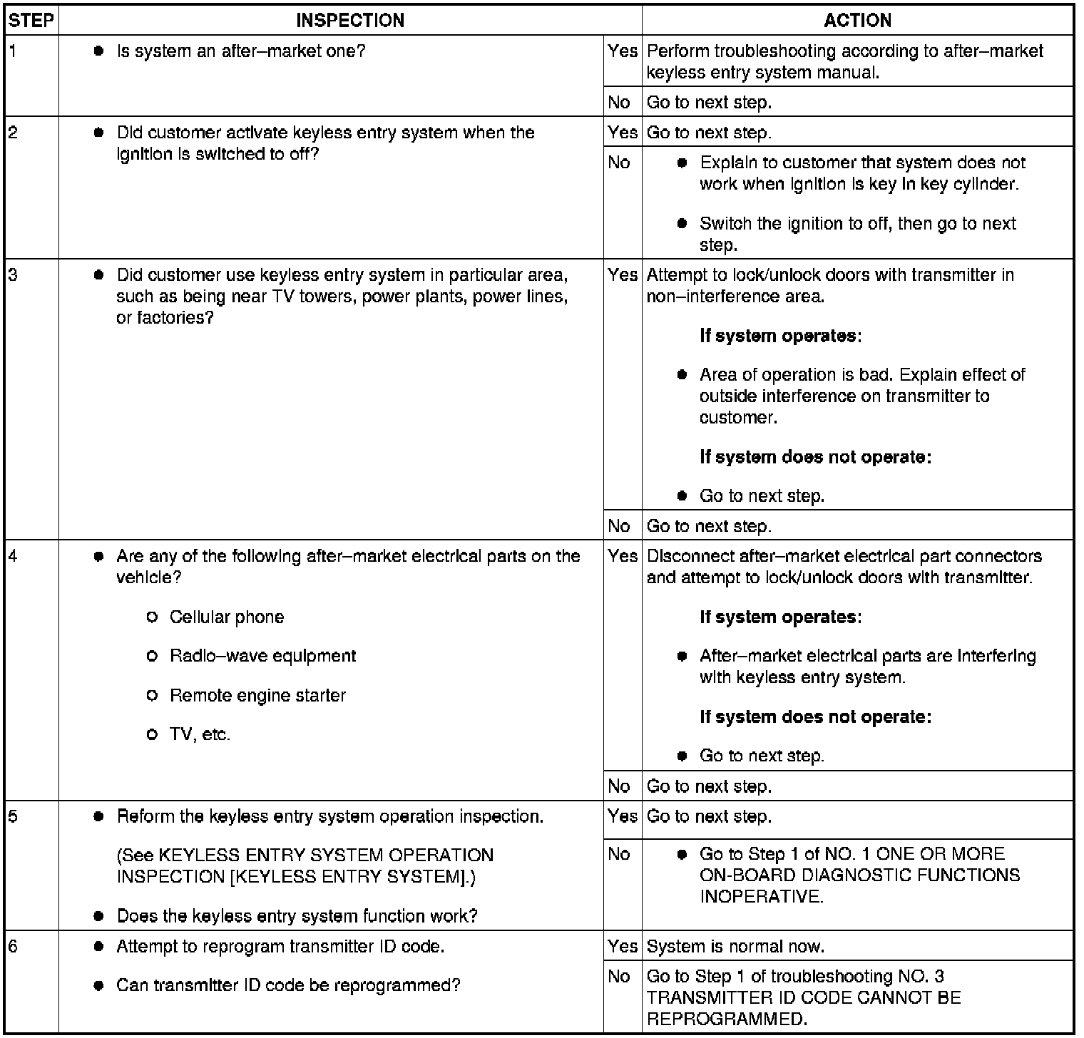 KEYLESS ENTRY SYSTEM PRELIMINARY INSPECTION [KEYLESS ENTRY SYSTEM]