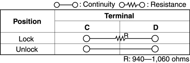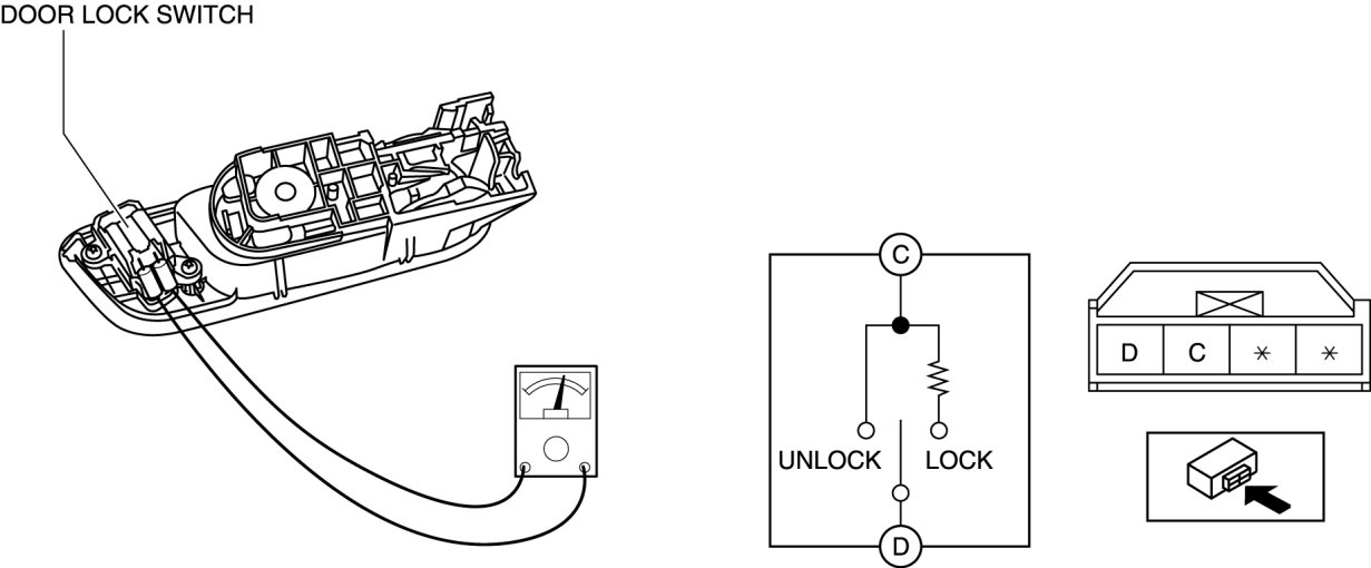 5. Inspect for continuity between the door lock switch terminals using an ohmmeter.