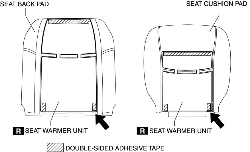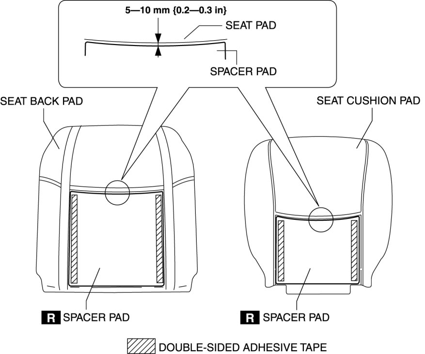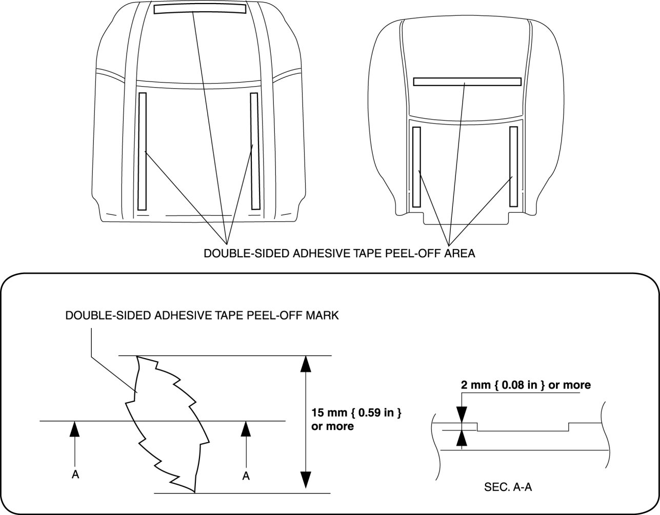 - If there are any peel-off marks from the seat back pad and seat cushion pad remaining after they have been peeled off, the seat pad cannot be reused and it must be newly replaced.
