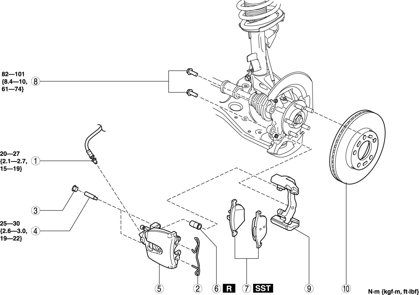 1. Install the brake hose to the caliper.
