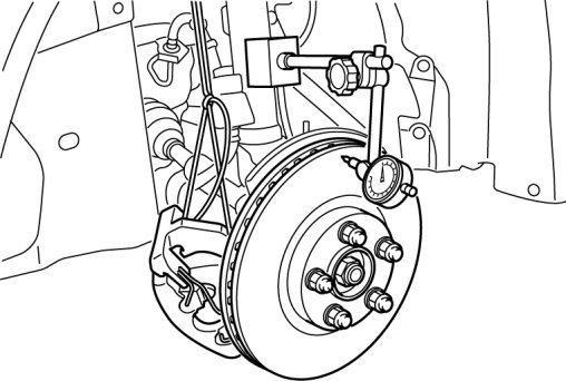 1. If the runout is more than 0.05 mm {0.002 in} at the position 10 mm {0.39 in} from the disc plate edge, uneven wear occurs on the disc plate because the pad contacts the plate unevenly.