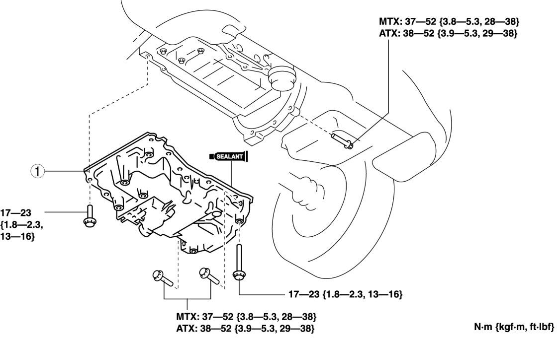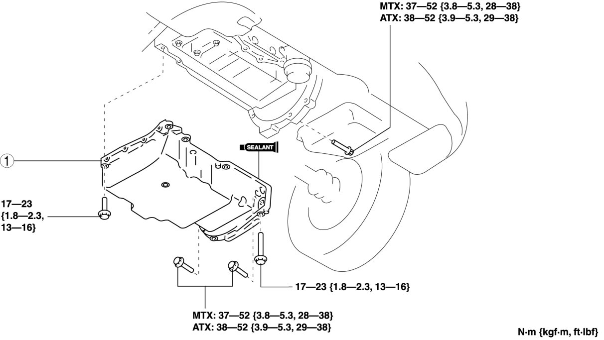 - ATX: 38-52 Nm {3.9-5.3 kgf-m, 29-38 ft-lbf}