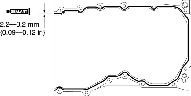 3. Apply silicone sealant to the oil pan along the inside of the bolt holes as shown in the figure.