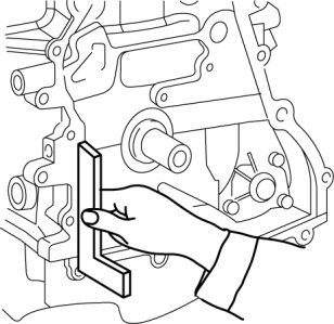 5. Use a square ruler to align the oil pan and the cylinder block junction side on the engine front cover side.