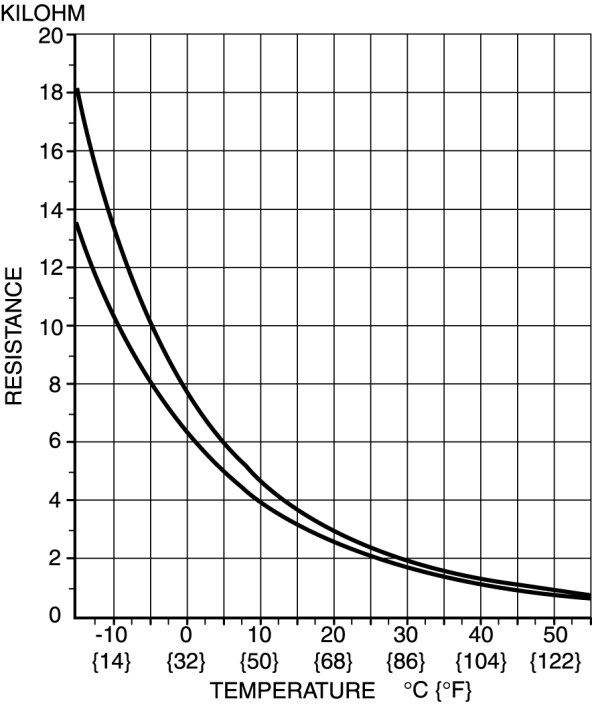 - If the characteristics of the passenger compartment temperature sensor are not as shown in the graph, replace the passenger compartment temperature sensor.