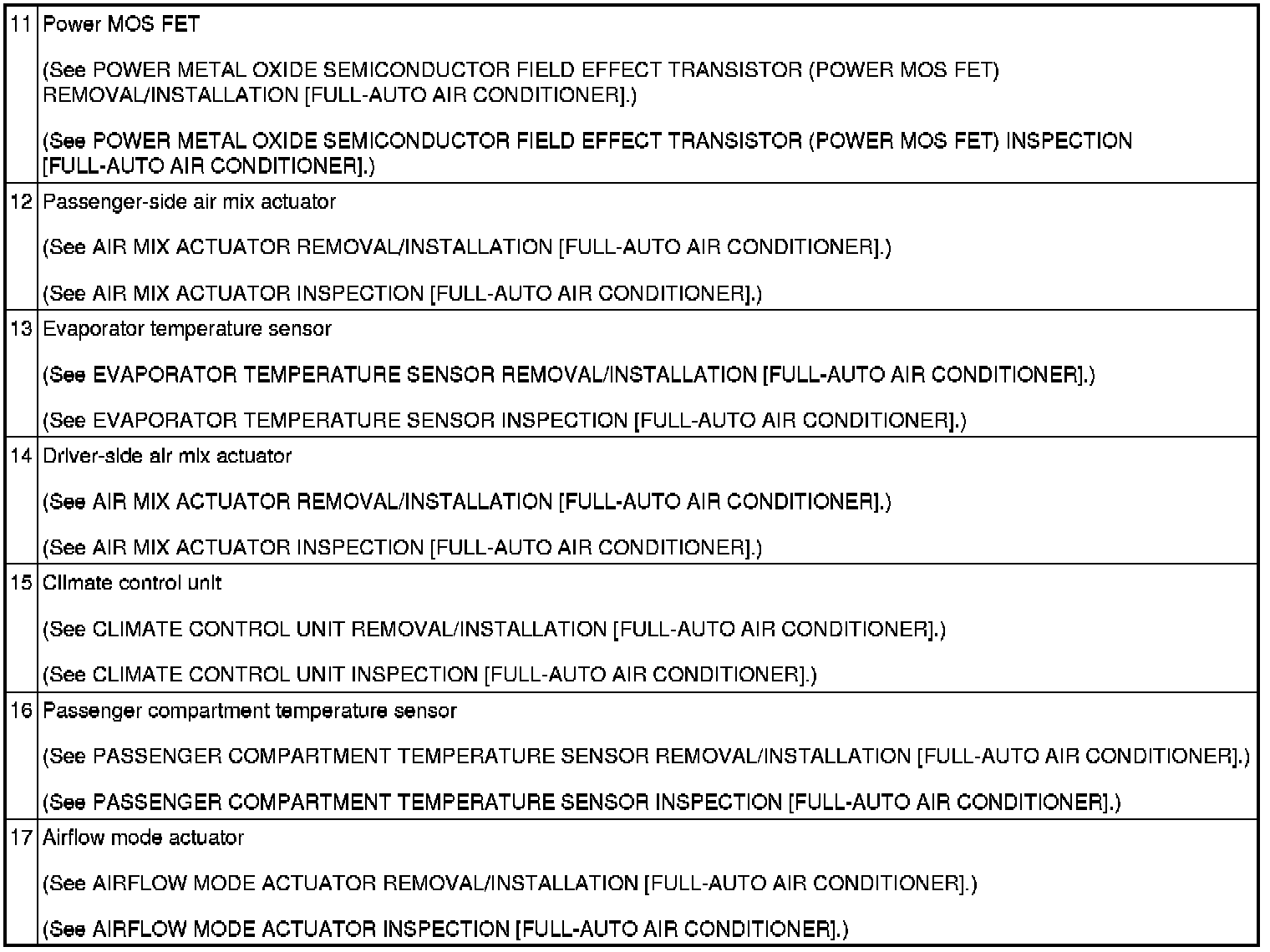 HVAC CONTROL SYSTEM LOCATION INDEX [FULL-AUTO AIR CONDITIONER]