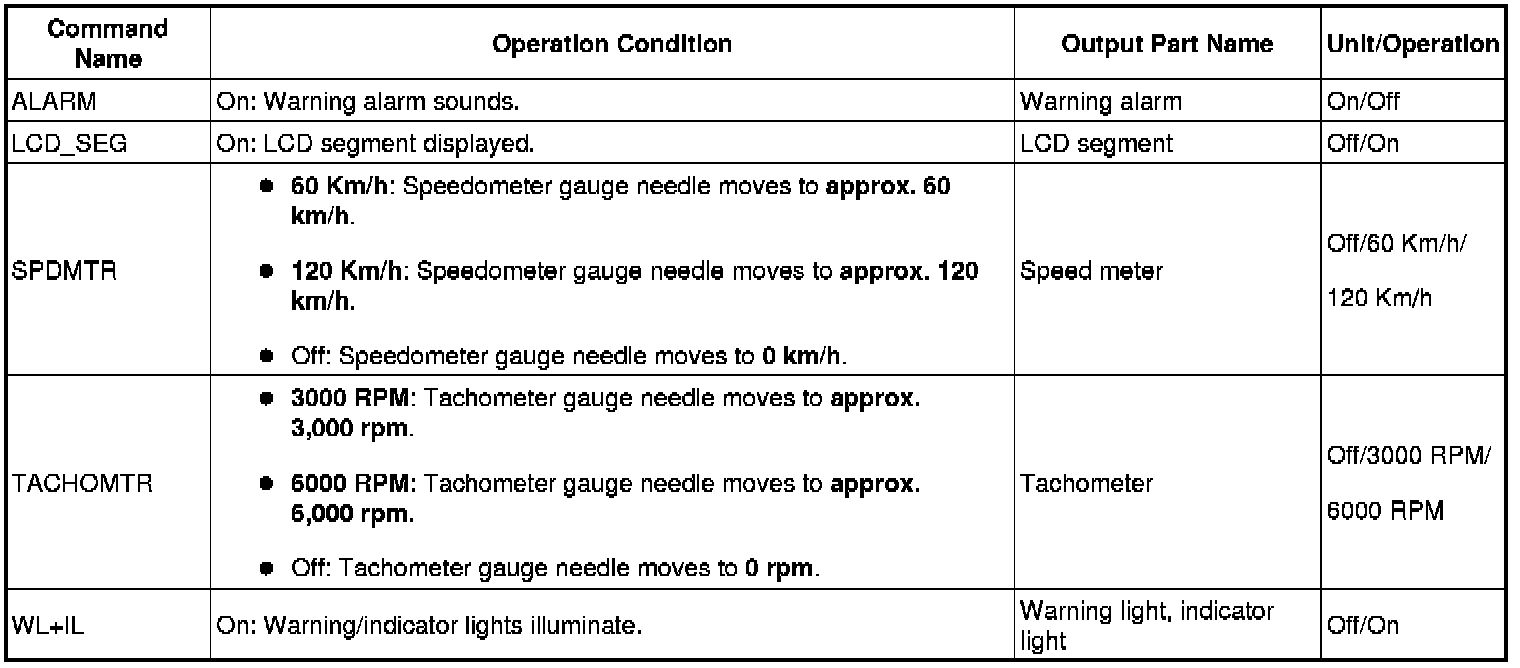 ACTIVE COMMAND MODES TABLE [INSTRUMENT CLUSTER]