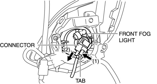 6. Pull the front fog light in the direction of the arrow shown in the figure and remove it from the front fog light cover.