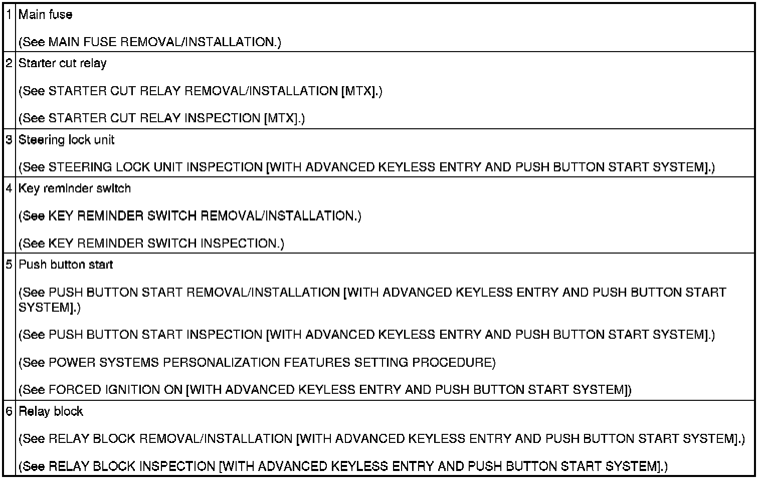 POWER SYSTEM LOCATION INDEX [WITH ADVANCED KEYLESS ENTRY AND PUSH BUTTON START SYSTEM]