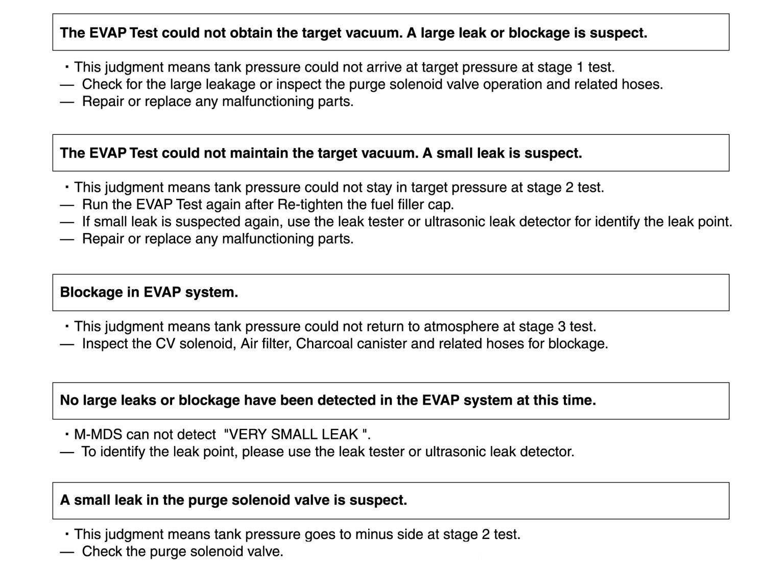 - M-MDS detect the small/large leak or blockage based on fuel tank pressure at the end of EVAP Test.