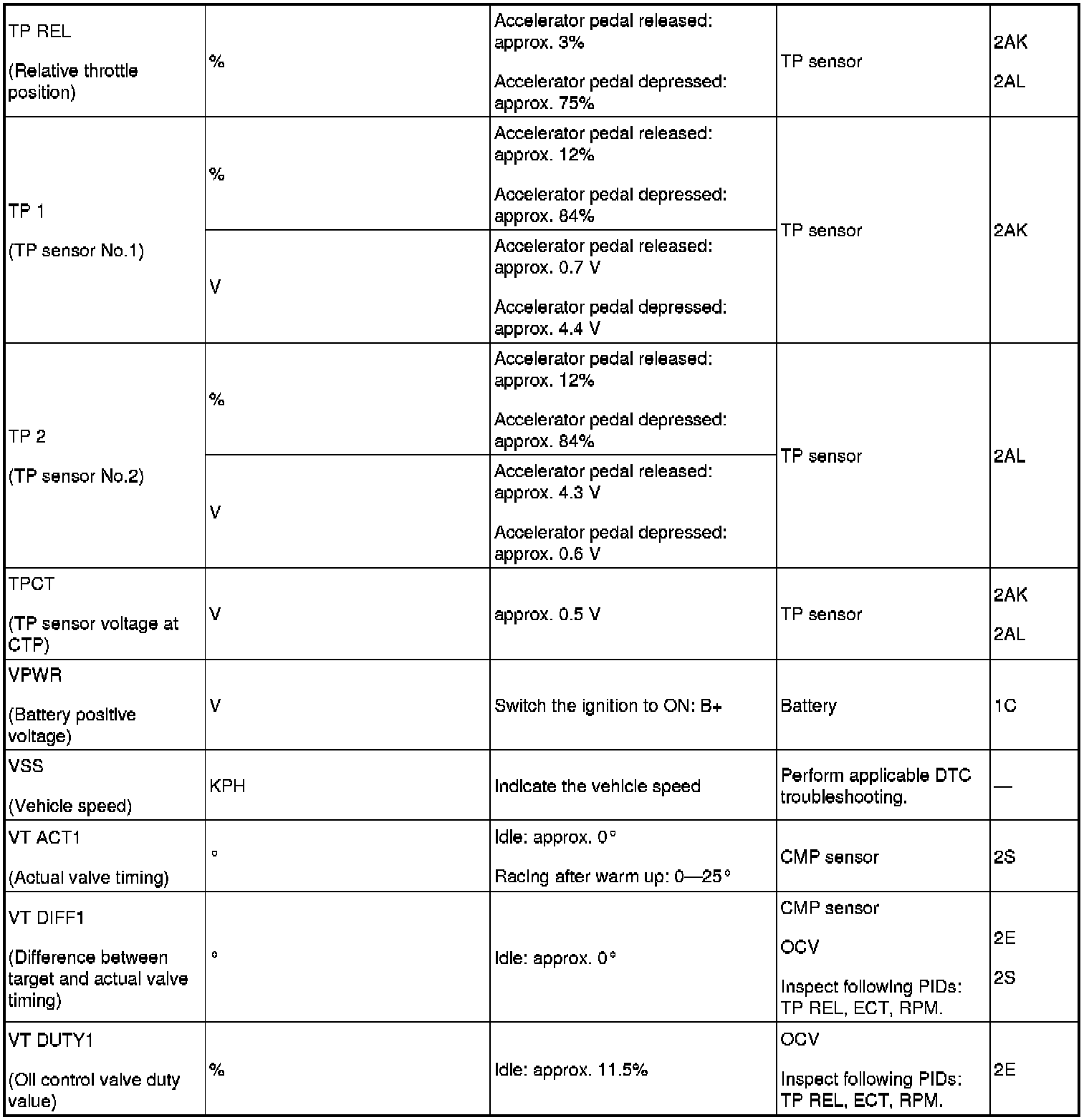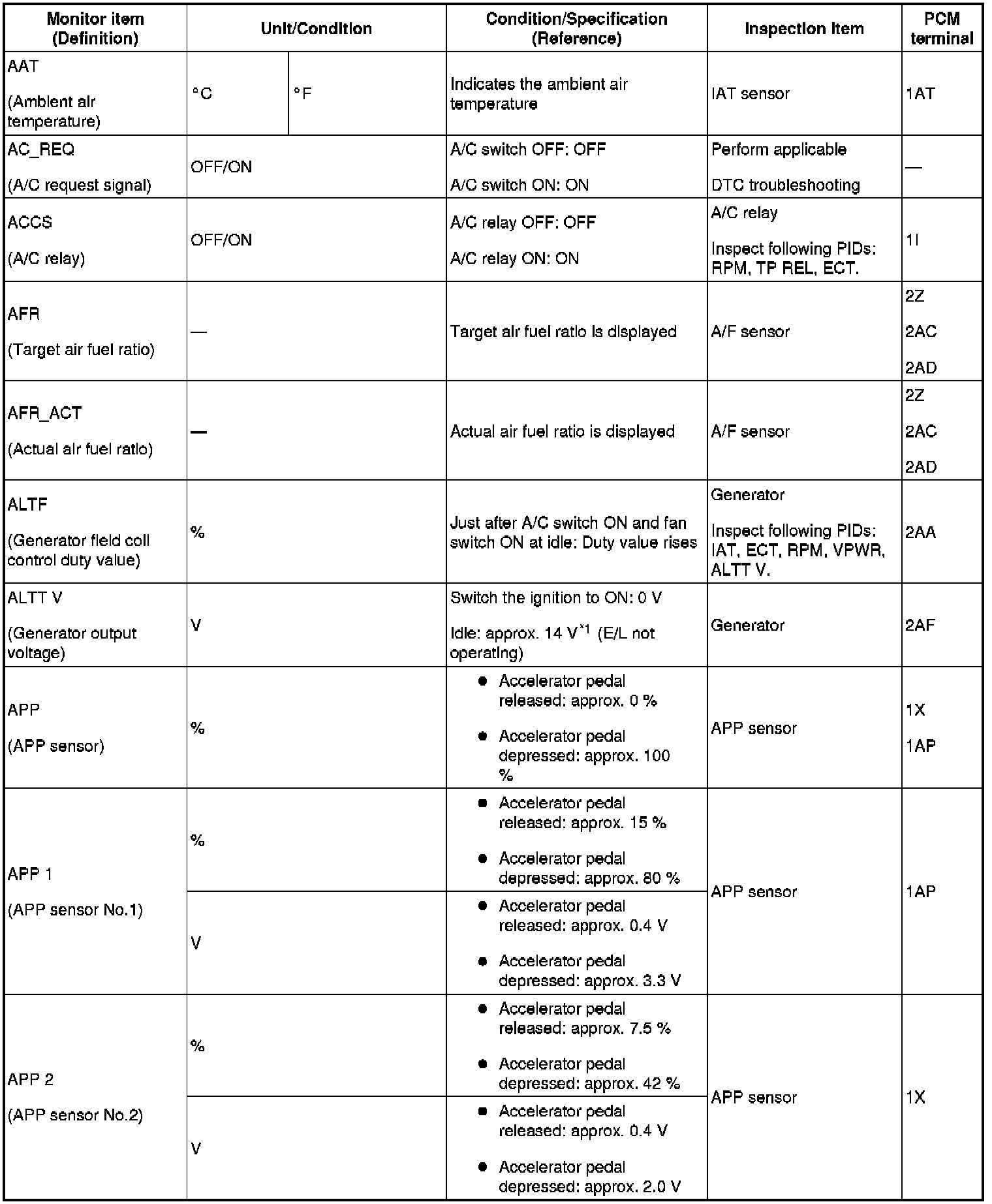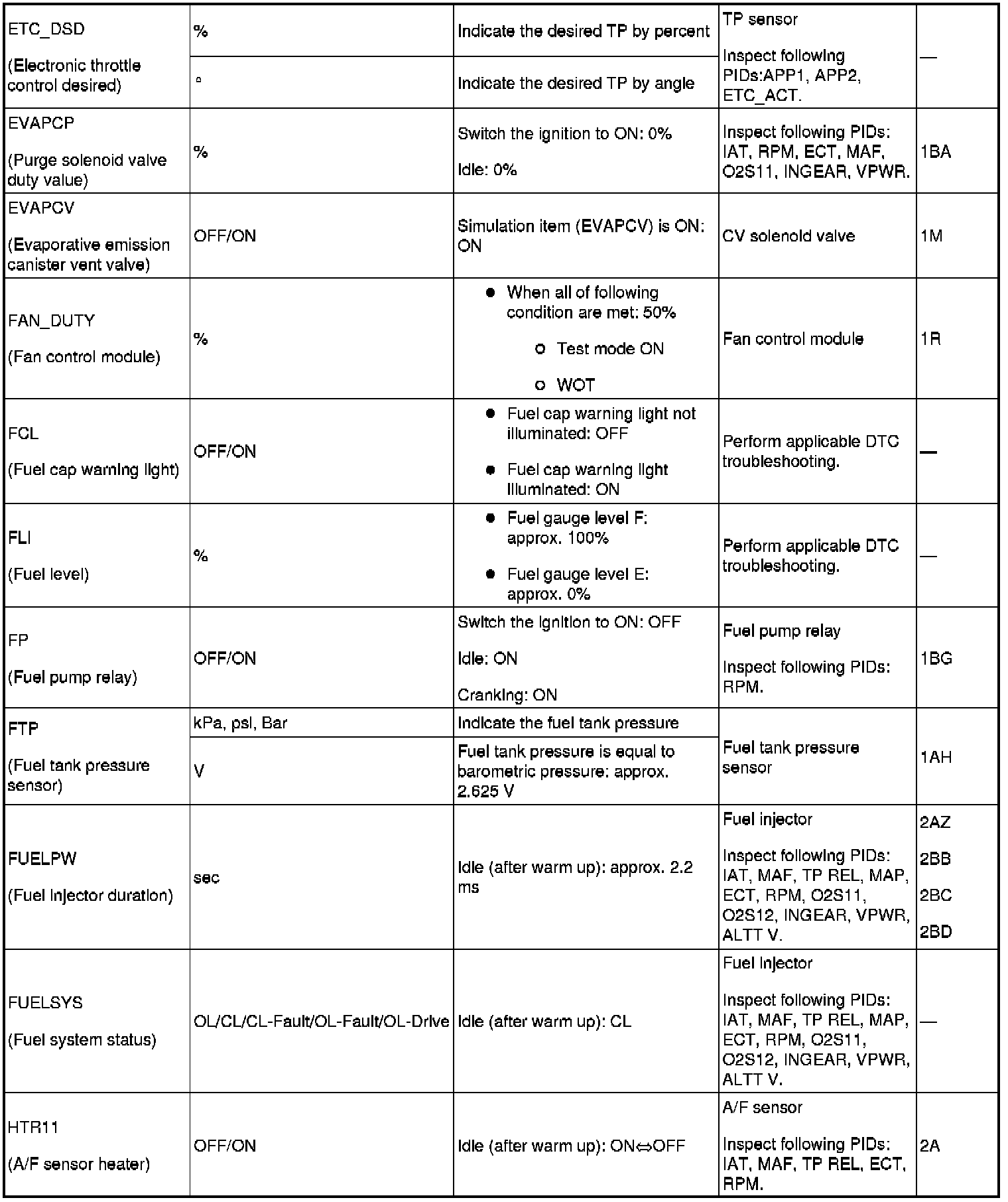 PID/DATA Monitor Table (Reference) (Part 1):