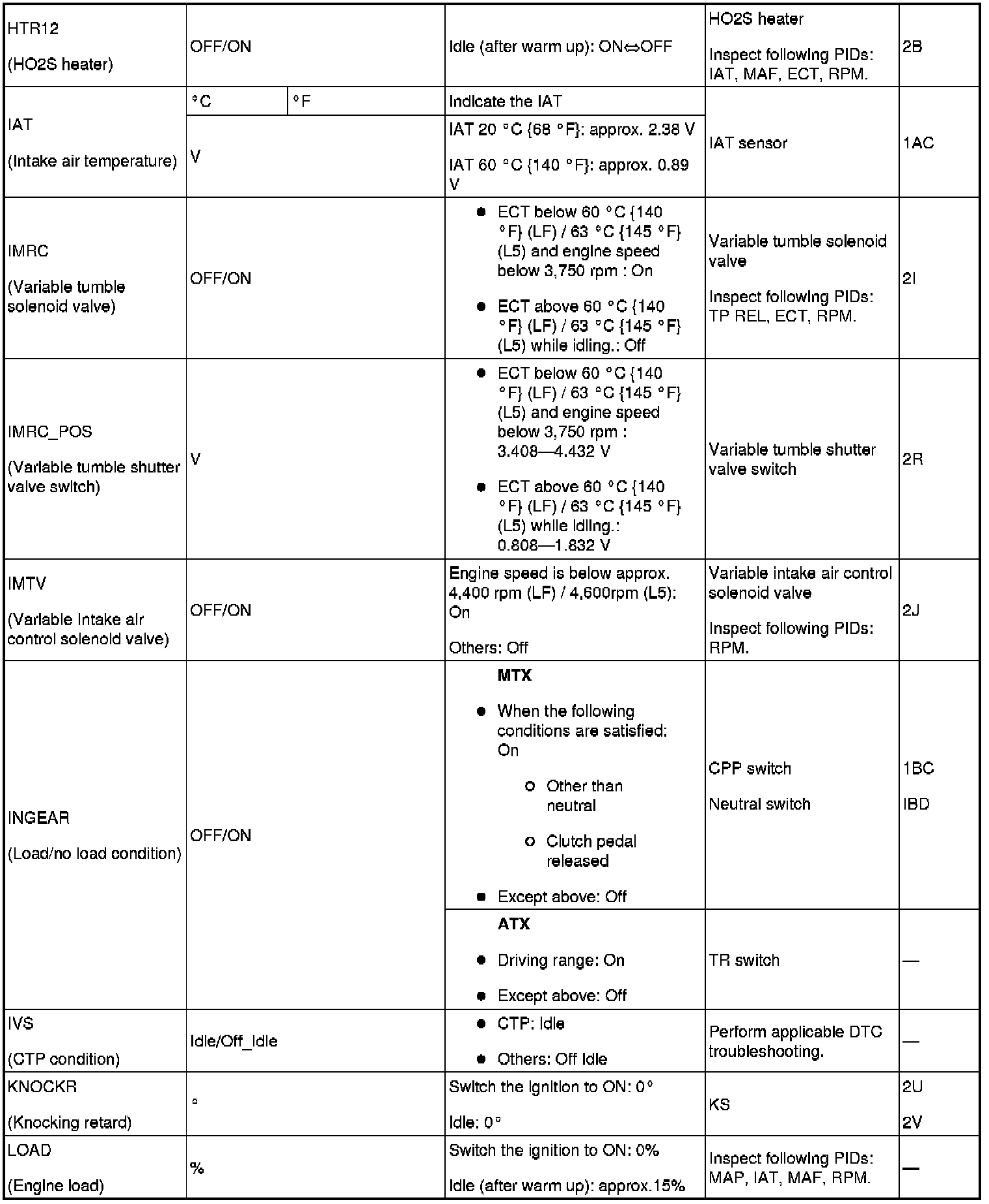 - Following PIDs are for the ATX models. If inspects for following PIDs, On-Board Diagnostic System PID/Data Monitor Inspection