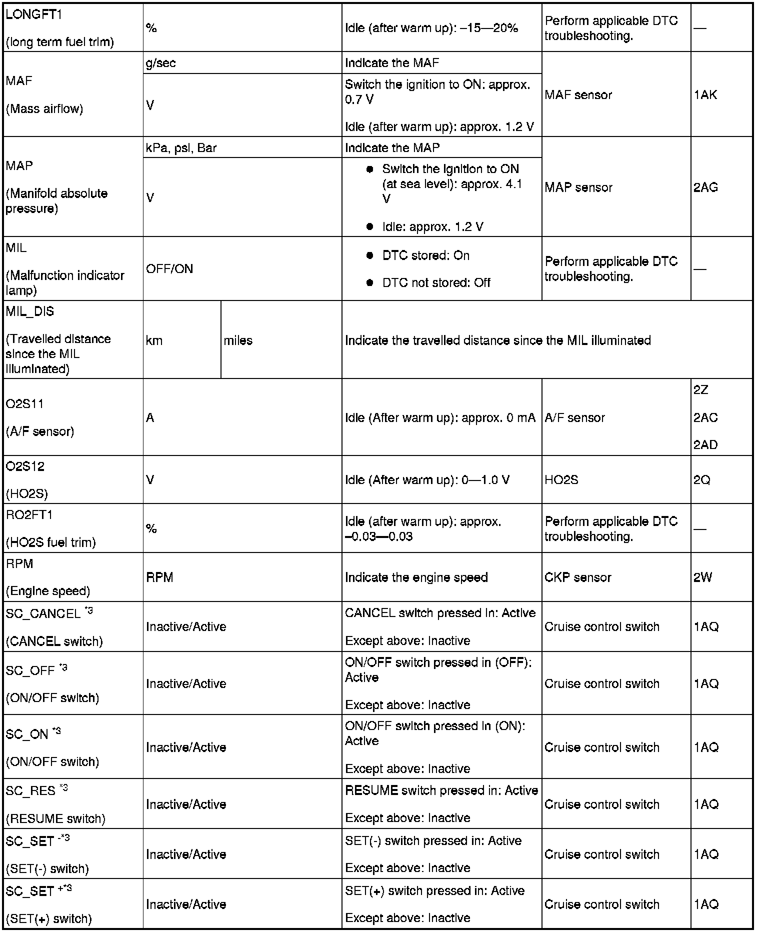 PID/DATA Monitor Table (Reference) (Part 3):