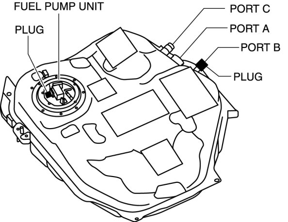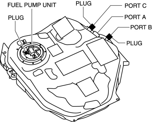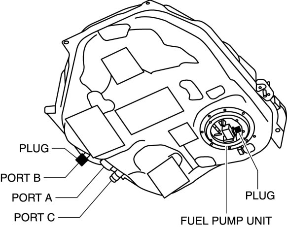 a. Plug the fuel pump unit pipe, ports B and C.