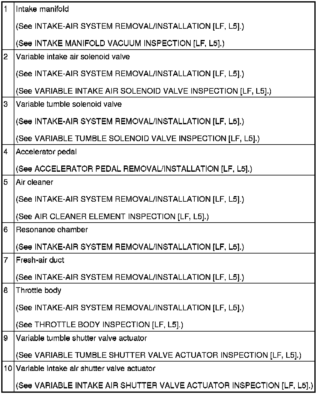 INTAKE-AIR SYSTEM LOCATION INDEX [LF, L5]