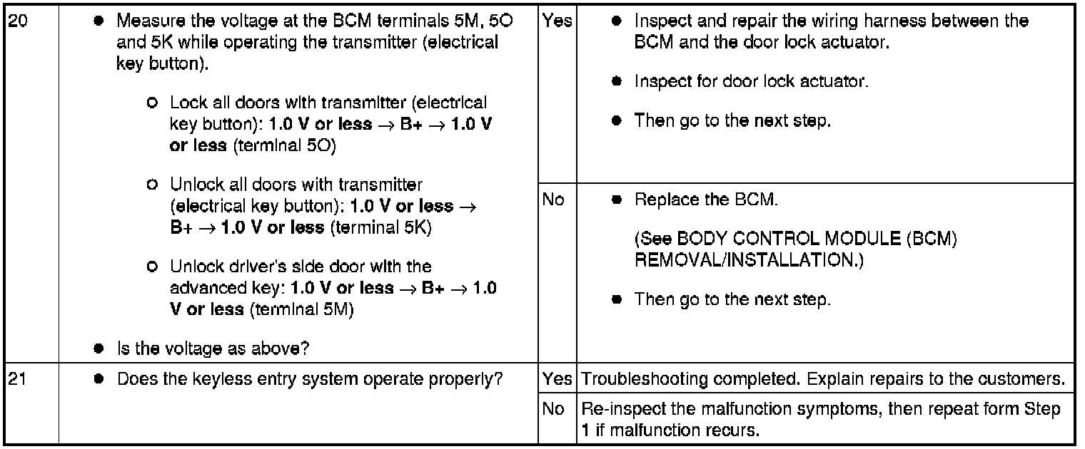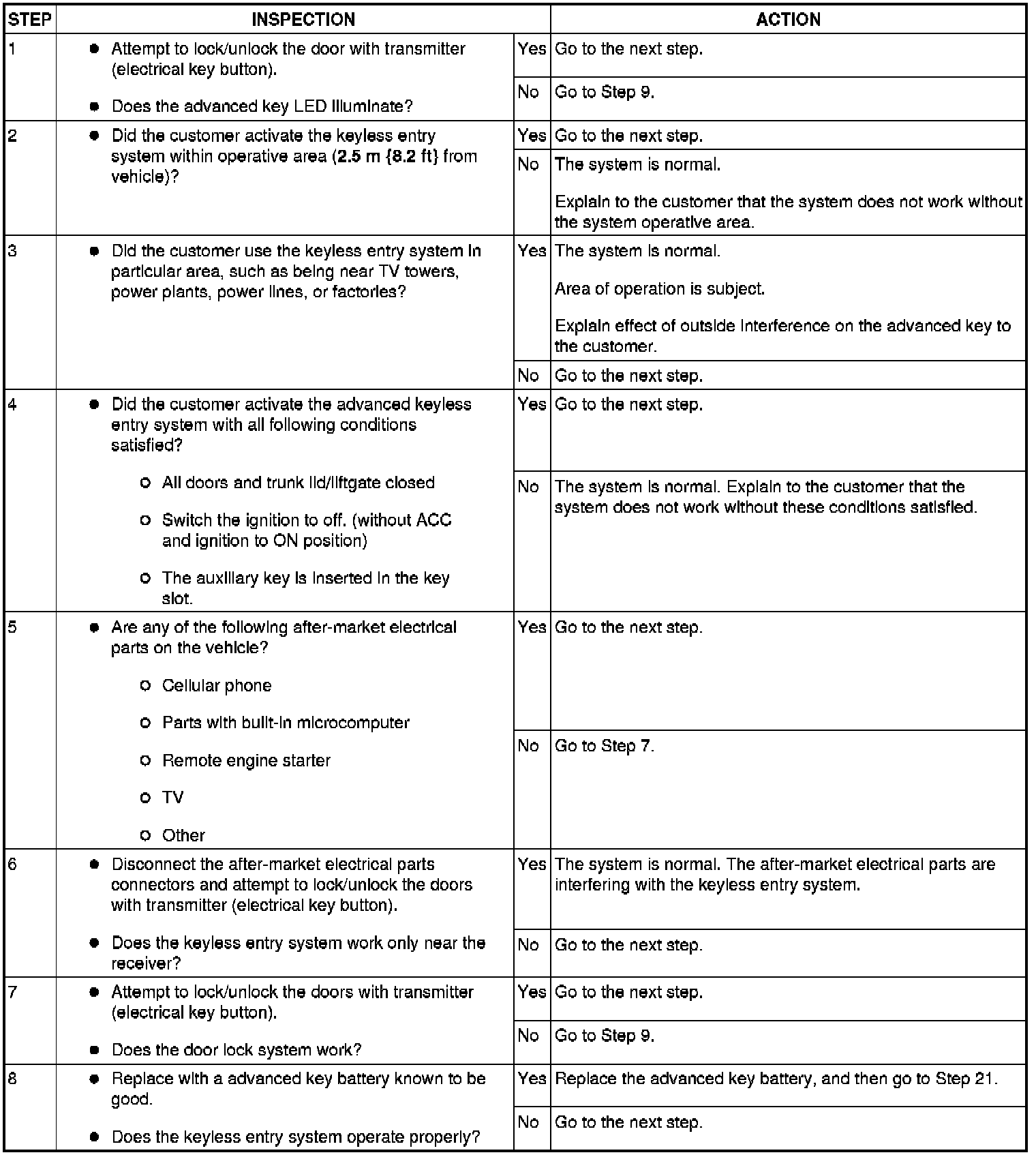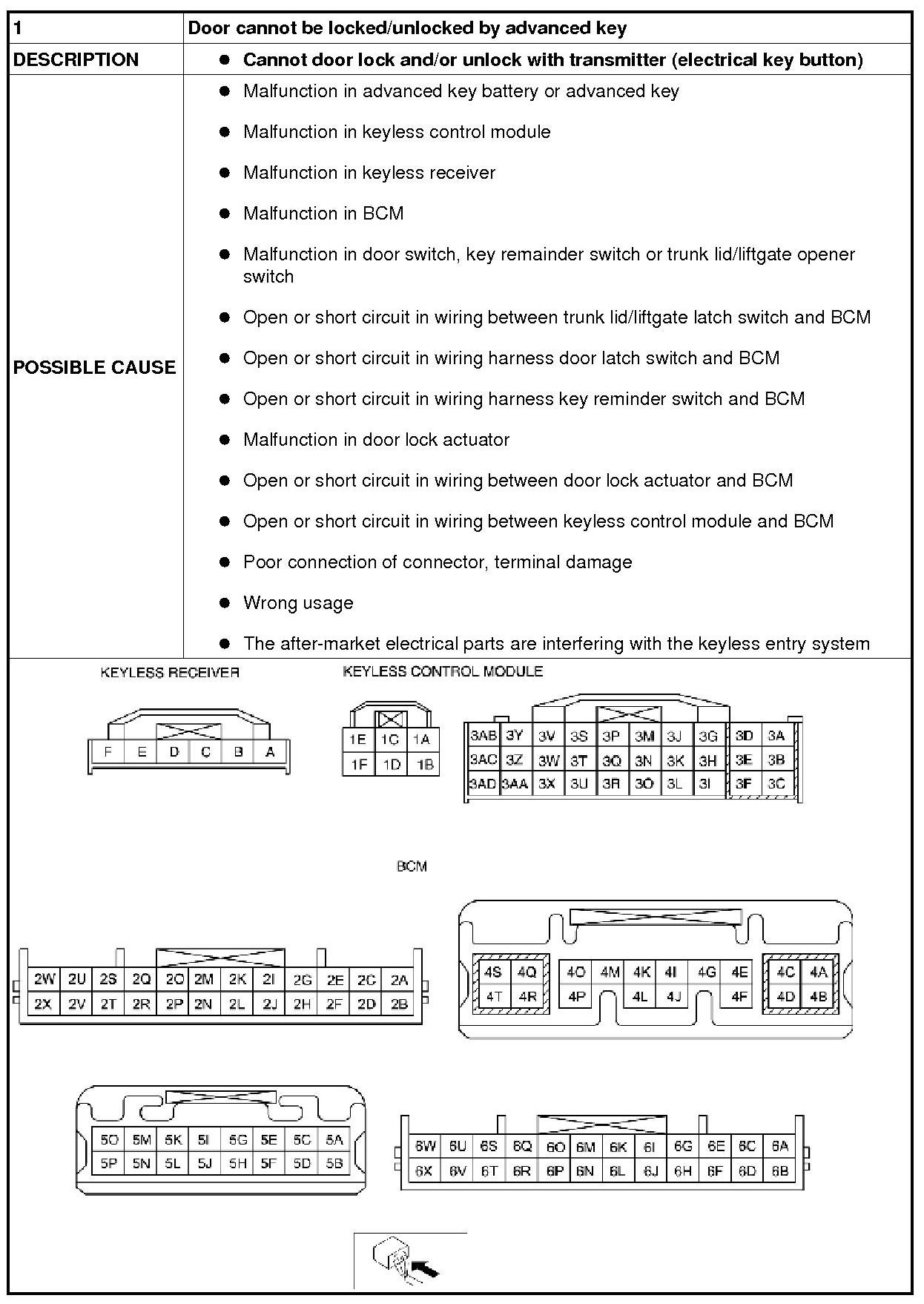 No.1 Door Cannot Be Locked/Unlocked By Advanced Key - Advanced Keyless Entry And Push Button Start System