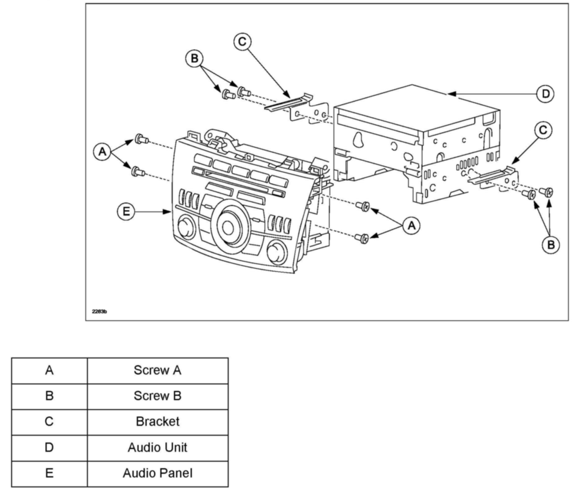 2. Remove the audio unit. Refer to MS3 online instructions or Workshop manual section 09-20 AUDIO UNIT REMOVAL/INSTALLATION.