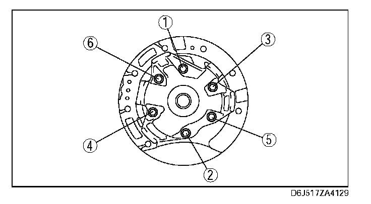Loosen the mounting bolts evenly in the pattern shown and remove the oil pump cover from the oil pump housing.