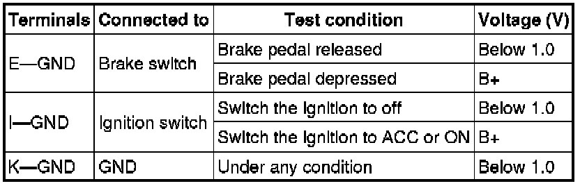 a. Verify that the selector lever cannot be shifted from P to R position when the brake pedal is released.