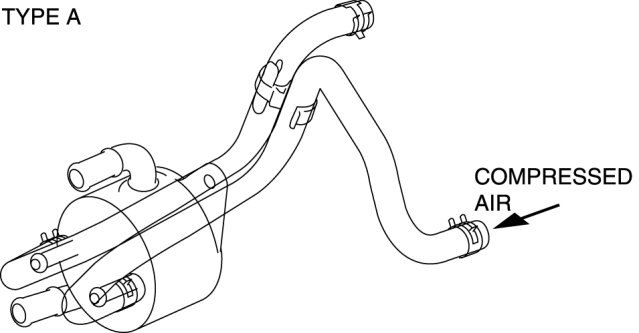 4. Add new ATF from the oil cooler hose outlet and blow 491-882 kPa {5-9 kgf/cm2, 72-127 psi} of compressed air to flush. (Repeat 2 or 3 times)