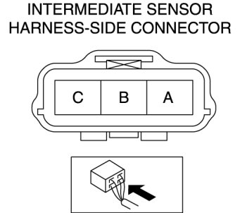 b. Measure the voltage at intermediate sensor connector terminal C (harness-side).