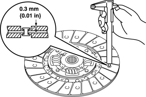 11. Measure the clutch disc runout using a dial gauge.