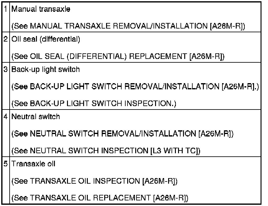 MANUAL TRANSAXLE LOCATION INDEX [A26M-R]