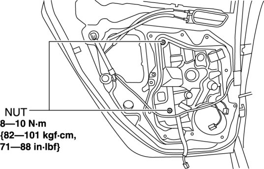 8. Remove the rear door glass. Rear Door Glass Removal/Installation