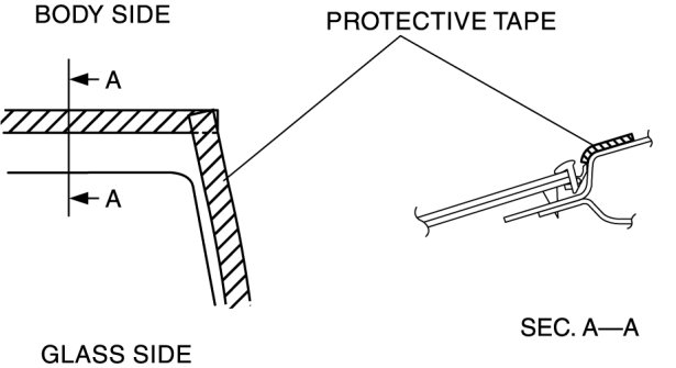 - Before removing the windshield from the body, mark the position of the windshield by affixing tape to the windshield and body panel.