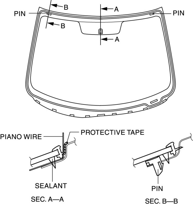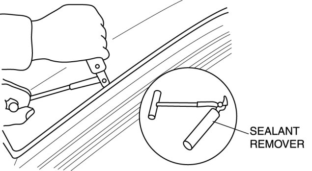 - If it is difficult to cut sealant, use piano wire and follow the procedure under "Reusing Windshield".