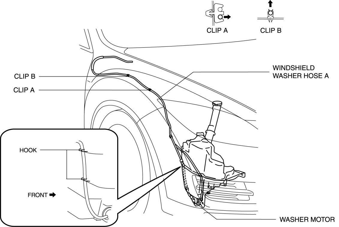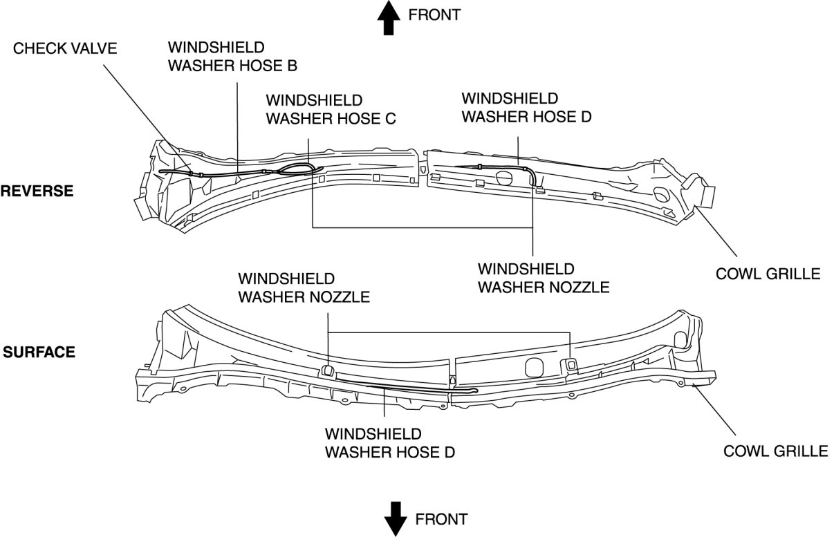 WINDSHIELD WASHER HOSE REMOVAL/INSTALLATION