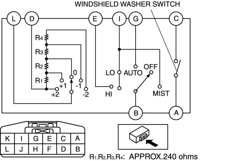 Windshield Washer Switch: Testing and Inspection