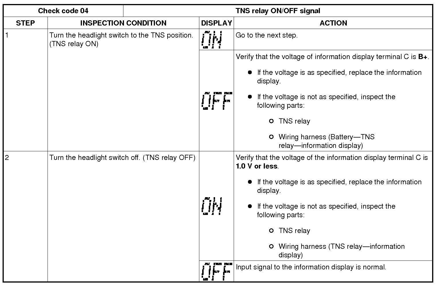 Information Display Input/Output Check Mode