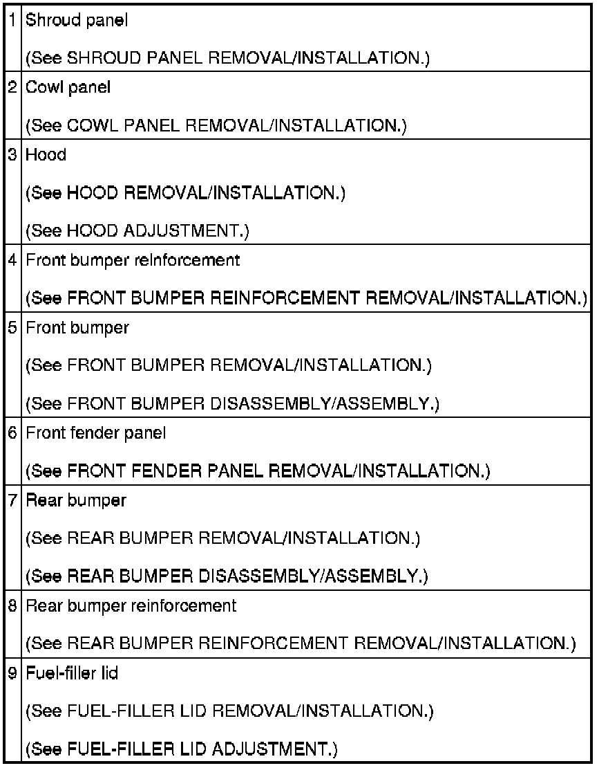 BODY PANEL LOCATION INDEX